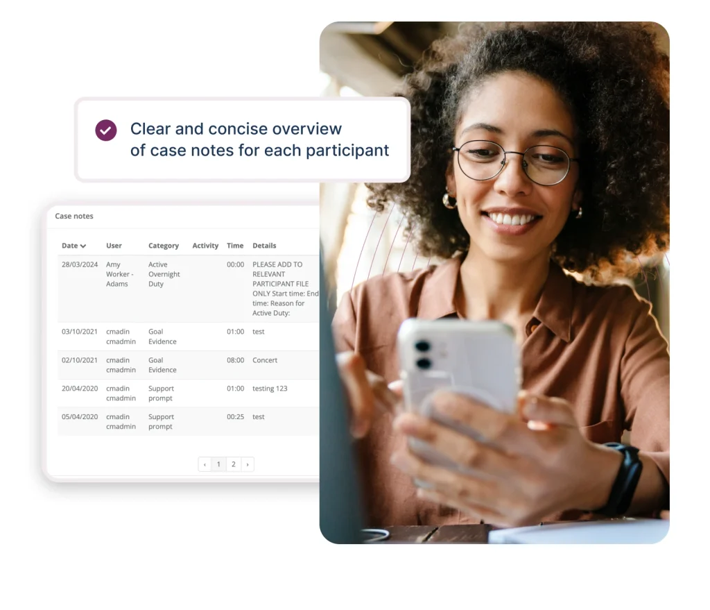 • Support worker tracking and filtering enable easy identification of case notes associated with specific Support Workers.
