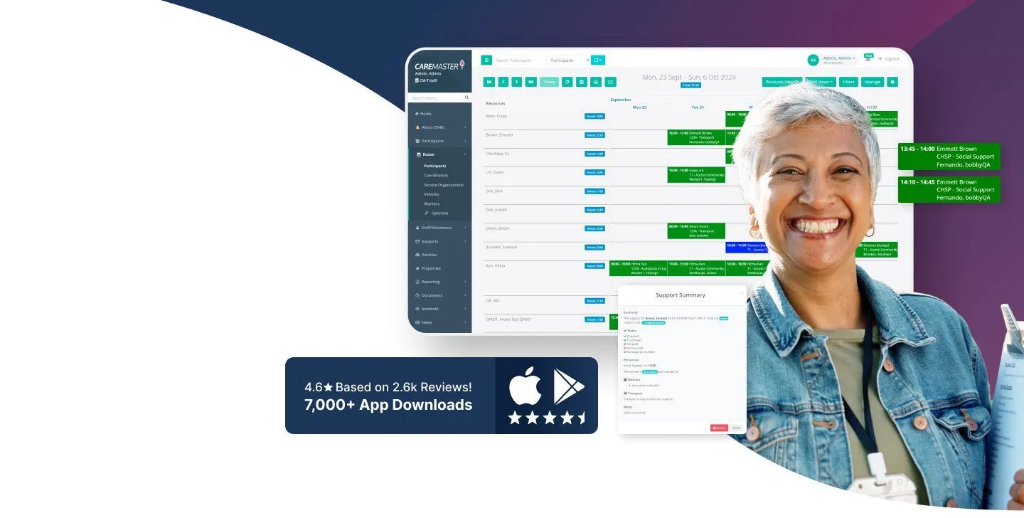CareMaster delivers essential features through three platforms: our cloud-based administration portal, Support Worker App, and Participant App. Onboard at your own pace for a personalised experience.